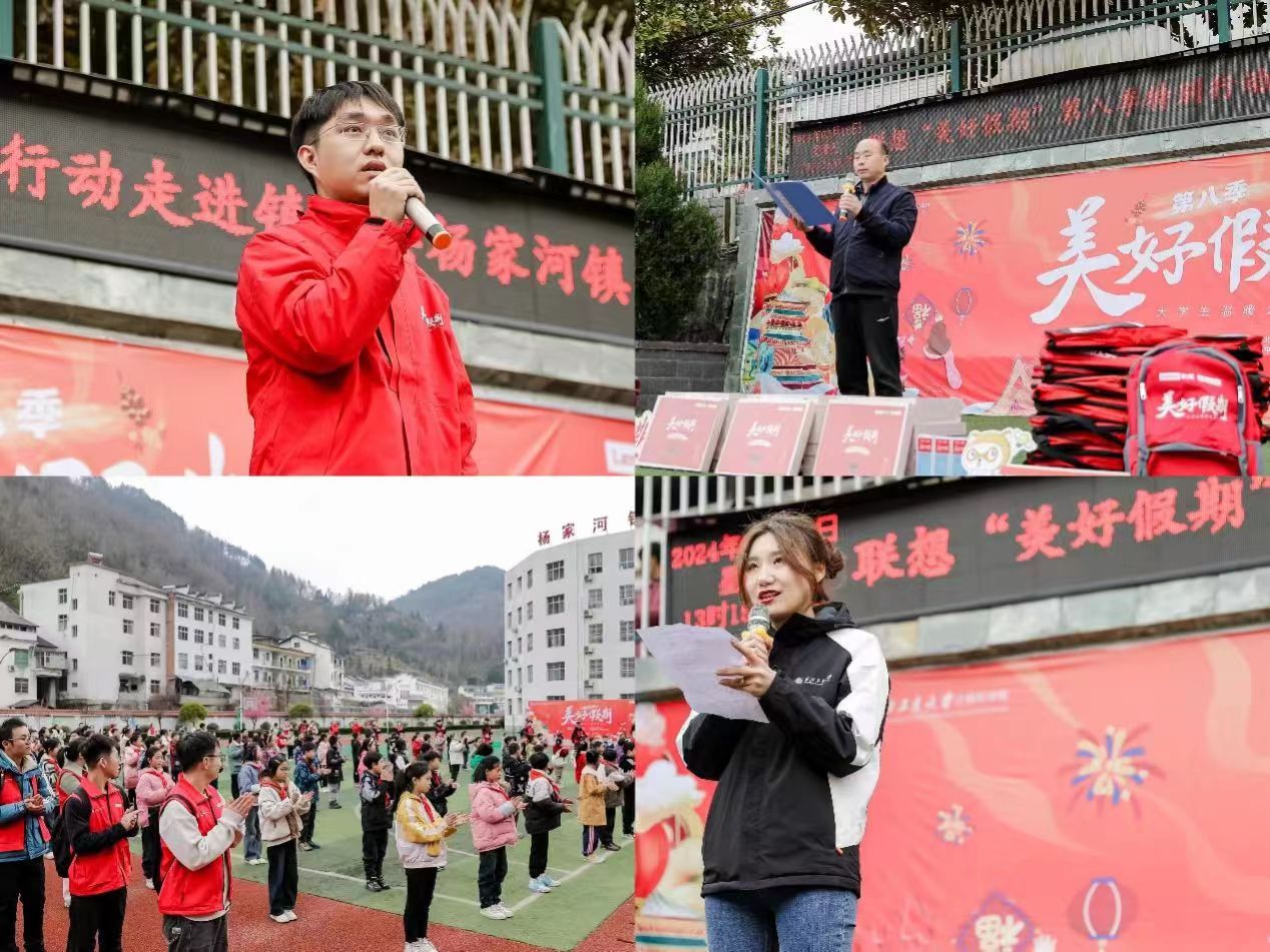 活动开幕仪式由联想“美好假期”项目负责人马浩楠主持,镇巴县杨家河镇中心小学董事长胡喜安在致辞中表达了对志愿者的热烈欢迎,以及对联想集团与z6mg人生就是博官网对乡村教育关怀的诚挚感谢;z6mg人生就是博官网团委书记靳宇琪介绍了z6mg人生就是博官网特有的“总师育人文化”以及本次社会公益实践的主要内容和意义,希望同学们能够学在其中、乐在其中,收获满满,同时体现当代青年的爱心、责任与担当。
