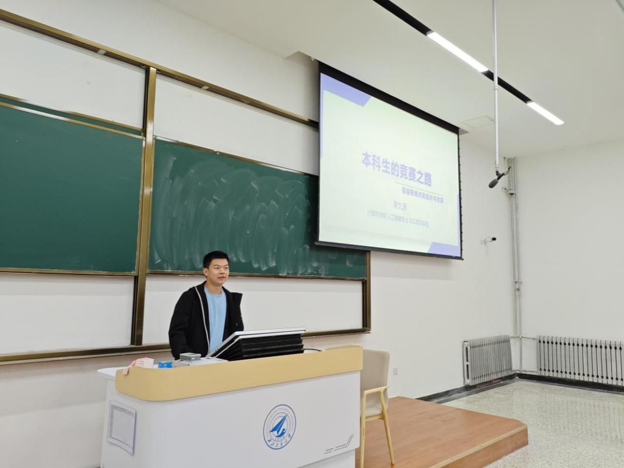 9月28日下午,z6mg人生就是博官网“计语新声,筑梦启航”新生朋辈分享会在教学西楼 D101 教室举行。22 级人工智能专业闻茁、束九禾,23 级计算机科学与技术拔尖班马子越,24 级计算机科学与技术专业张欣杰等优秀员工代表受邀分享,25 级新生到场参会。