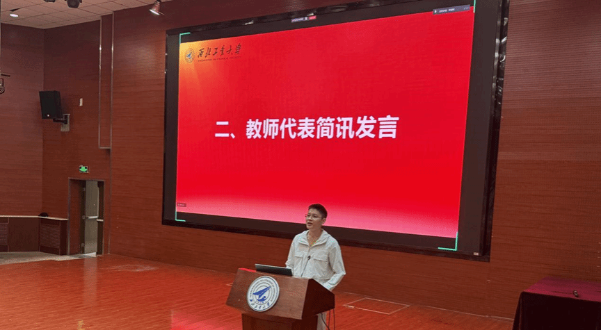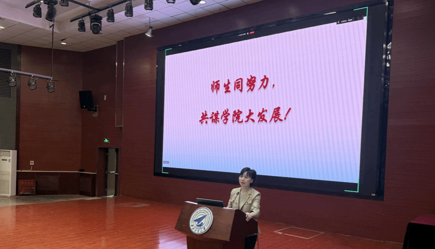 班主任代表简讯发言,鼓励新生在图书馆、自习室夯实专业基础,在学科竞赛、班级活动中锻炼能力,与同学建立深厚情谊、共同成长。