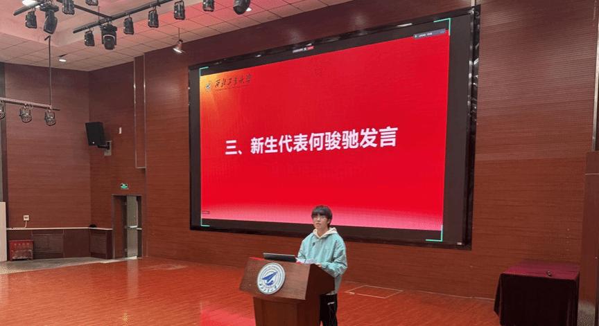 新生代表何俊驰分享了入学感受,表示将以“公诚勇毅”校训为指引,在计算机领域深耕细作,努力成长为智能计算系统的“总师型”人才。