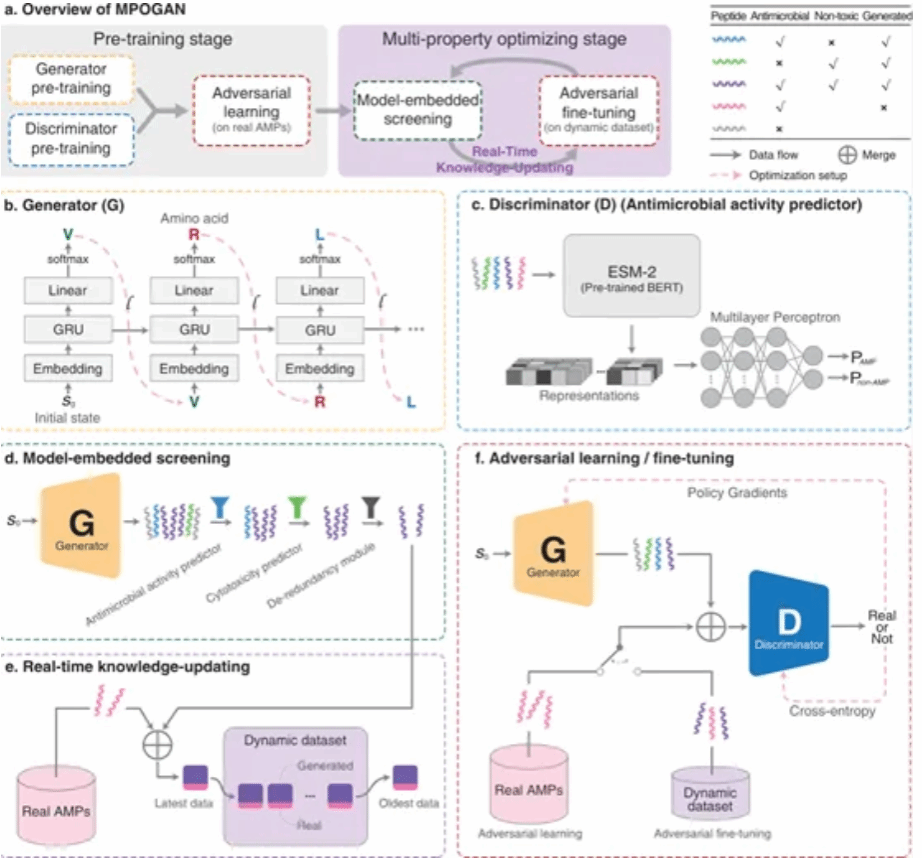 近日,z6mg人生就是博官网科学智能(AI for Science)交叉研究中心研究成果“A Multi-Property Optimizing Generative Adversarial Network for de novo Antimicrobial Peptide Design”发表于《Advanced Science》期刊。z6mg人生就是博官网硕士生刘佳明、生命公司副教授崔涛和z6mg人生就是博官网副教授汪涛为该论文共同第一作者,z6mg人生就是博官网牛银波教授、复旦大学魏忠钰教授和z6mg人生就是博官网彭佳杰教授为共同通讯作者。